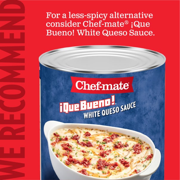 - Also available to try Chef-mate ¡Que Bueno! White Queso Sauce