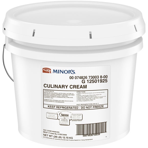 | Preparation Instructions | Directions for use - to stabilize cream and butter sauces, use the following as a guideline: • To replace 1 quart (4 cups) of heavy cream, use 2 cups Culinary Cream and 2 cups skim milk • To replace Half & Half, use 1 cup Culinary Cream and 3 cups skim milk • To replace reduced heavy cream, use 4 cups Culinary Cream • To replace 1 pound of butter, use 8 oz. Culinary Cream and 8 oz. butter |