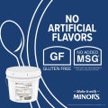 To make a fully seasoned stock or broth, add 1 lb of Minor's base to 5 gallons of water. For other portions, see additional ratios in the "Preparation & Storage" tab.