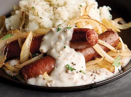 Top with caramelized onions and 1/4 cup of Country Sausage Gravy.
