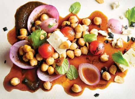 Braised Chickpeas, Charred Tomatoes, Mint and Feta