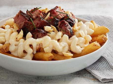 The classic Canadian snack gets a premium upgrade with a topping of white cheddar macaroni and cheese and brisket burnt ends. Garnish the Burnt Ends Mac & Cheese Poutine with fresh parsley for a pop of color and freshness.