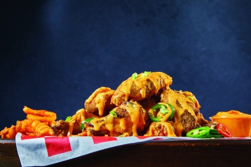 Elevate your chicken wing game with these mouthwatering cheesy chicken wings. This recipe takes the classic finger food to a whole new level by adding a layer of gooey and melty cheese, resulting in a flavor-packed and indulgent treat that will have everyone reaching for more. Chicken wings are fried and tossed in hot CHEF-MATE® ¡Que Bueno! Jalapeño Cheese Sauce and topped with chopped fresh cilantro and jalapeño slices for the iconic flavor wing lovers crave.
