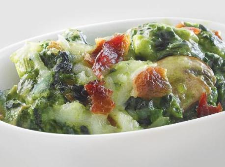 2Add Creamed Spinach and crispy bacon. Gentle fold constantly until hot and well blended.