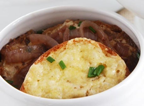 1In a soup pot, add oil, leeks, Vidalia, red, and Spanish onions, and shallots. Over medium to medium-high heat, caramelize the onions until deeply brown and soft, about 20 minutes. Add thyme.