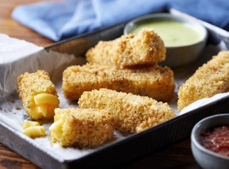 Fried Macaroni and Cheese Sticks can be served with a variety of dipping sauces.