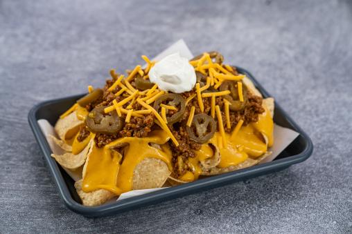 3To build mound tortilla chips on desired serving vessel, then add pumpkin queso, pumpkin beef, sliced jalapenos, shredded cheese, and sour cream.