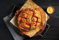 6Wrap loaf in foil and bake at 350° for 20 minutes then unwrap and bake for 5-10 minutes, until golden.