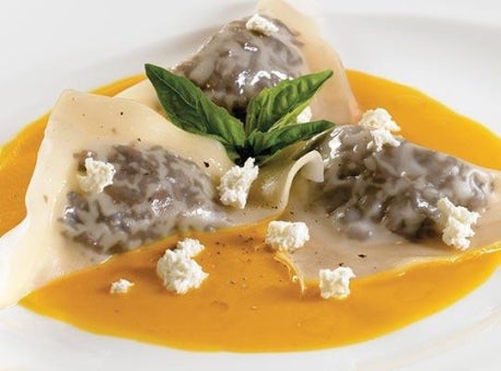 Mushroom Ravioli in Butternut Squash Bisque