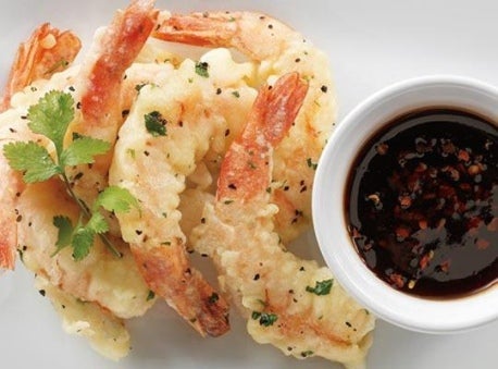Dry shrimp on a paper towel. Dredge shrimp in 1 cup of rice flour. Shake off excess flour. Holding shrimp by the tail, dip each one into tempura pepper batter and place directly into a 350°F deep fryer. Cook for 2-3 minutes until golden brown.