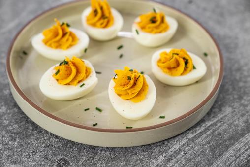 2Process egg yolks, Libby’s Pumpkin Puree, Dijon mustard, cayenne pepper, and white balsamic vinegar in a food processor until smooth and uniform.