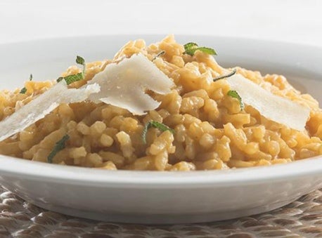 7Remove risotto from heat and fold in sage, parmesan cheese and pumpkin. Serve immediately or chill and roll into arancini.