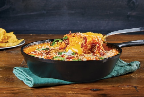 CHEF-MATE® ¡Que Bueno! Jalapeño Cheese Sauce is combined with shredded cheddar, crumbled bacon, fresh jalapeños, and sour cream; baked with panko on top, and garnished with more bacon, cilantro, and sliced jalapenos for a dip with a kick. Get ready to spice up your next gathering with this irresistible Shareable Jalapeno Popper Dip. Creamy, cheesy, and packed with a kick of heat, this dip is a crowd-pleasing appetizer that will have everyone coming back for more. Once the Shareable Jalapeno Popper Dip is baked to perfection, remove it from the oven and let it cool for a few minutes. This will allow the dip to set slightly and make it easier to handle. Serve the dip warm with an assortment of dippables such as tortilla chips, crackers, or sliced baguette. The creamy and cheesy dip paired with the spicy kick of the jalapenos and green chilies will create a flavor explosion in every bite. This Shareable Jalapeno Popper Dip is perfect for any gathering or party, whether it's a casual get-together or a game day celebration. Its addictive flavors and creamy texture make it a hit with both spice lovers and cheese enthusiasts. So, gather your ingredients, embrace the heat, and get ready to impress your guests with this irresistible Shareable Jalapeno Popper Dip. It's a crowd-pleasing appetizer that will add a spicy kick to any occasion.