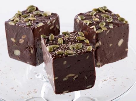 5Top fudge with remaining pepitas and sprinkle smoked salt.