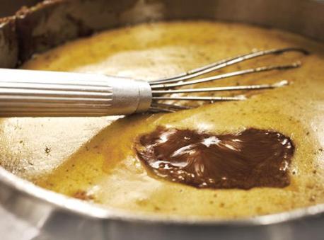 3Use a wire whip to slowly emulsify the butter into the sauce. Serve as a sauce for steaks, chops, and even vegetables.