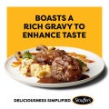 | Preparation Instructions | Convection Oven: (325°F) Preheated. Dome lid away from product crimping tightly over tray edges. Place tray on baking sheet. During last 10-15 minutes rotate steaks and spoon with gravy; replace lid. If frozen (0°F): Cook 50-55 minutes; if thawed (40°F or less): Cook 35-40 minutes. Conventional Oven: (400°F) Preheated. Dome lid away from product crimping lightly over tray edges. Place tray on baking sheet. During last 10-15 minutes rotate steaks and spoon with gravy; replace lid. If frozen (0°F): Cook 1 hour and 15-20 minutes; if thawed (40°F or less): Cook 55-60 minutes. Combi-Oven: (350°F) Full Fan, Preheated. Do not loosen lid. Place tray on baking sheet. Halfway through cooking; rotate steaks and spoon with gravy; replace lid. If frozen (0°F): Cook 25-30 minutes; if thawed (40°F or less): Cook 20-25 minutes. Microwave Oven: 1100 Watt. Cook loosely covered in a microwave-safe container. If thawed (40°F or less): Cook 1 Salisbury Steak with Gravy 50% Power 3-3 ½ minutes. For Food Safety and Quality follow cooking instructions: Cook product to internal temperature of 165°F/74°C. |