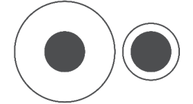 The Delboeuf Illusion illustrates how our ability to perceive relative size is easily skewed. Note how the two dark circles, which are exactly the same size, appear different because of the circles framing them.1,2 This may explain why similar portions look larger on small plates and why people tend to overserve themselves on large plates.