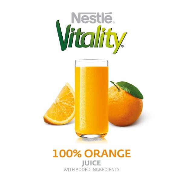 • Nestle Vitality 100% Orange Flavored Juice Blend Ambient Concentrate with added ingredients