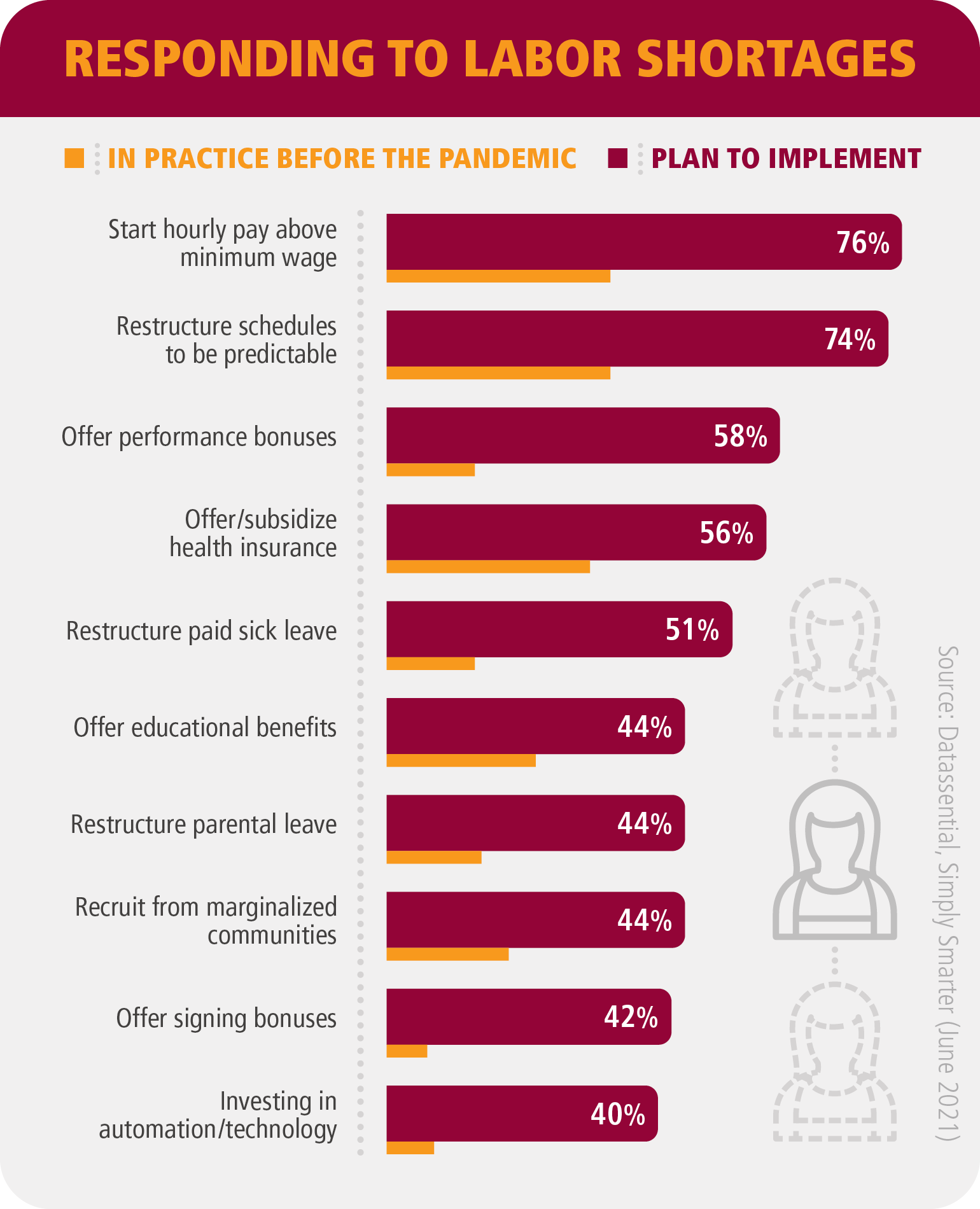 Events of the past year and a half—and the way local news and other media reported on them—seem to have created a wider awareness of the difficult realities of the food and beverage industry. Keeping customers safe during the pandemic has always been a priority, but many operators have also committed to their employees as a core value—reopening or bringing back more workers only when it was safe to do so for the staff.